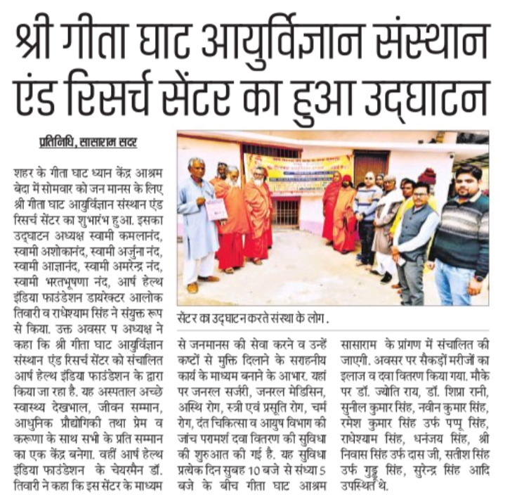 The Shri Geeta Ghat Ayurvigyan Institute & Research Center has been established to support public health with compassionate service, modern diagnostics, and Ayurveda. The inauguration took place in the presence of respected Saints, healthcare experts, and local residents.